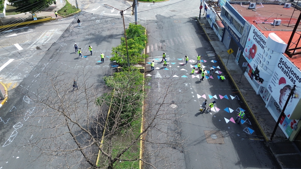 Durante la intervención táctica se ampliaron los espacios peatonales que reducirá la distancia y el tiempo de cruce para las personas, y se eliminarán espacios residuales que dificultaban la legibilidad urbana. Estas adecuaciones temporales tienen como propósito moderar la velocidad vehicular y mejorar la accesibilidad peatonal, en línea con lo establecido en la Ley General de Movilidad y Seguridad Vial y la NOM-003-SEDATU-2023 sobre diseño vial.