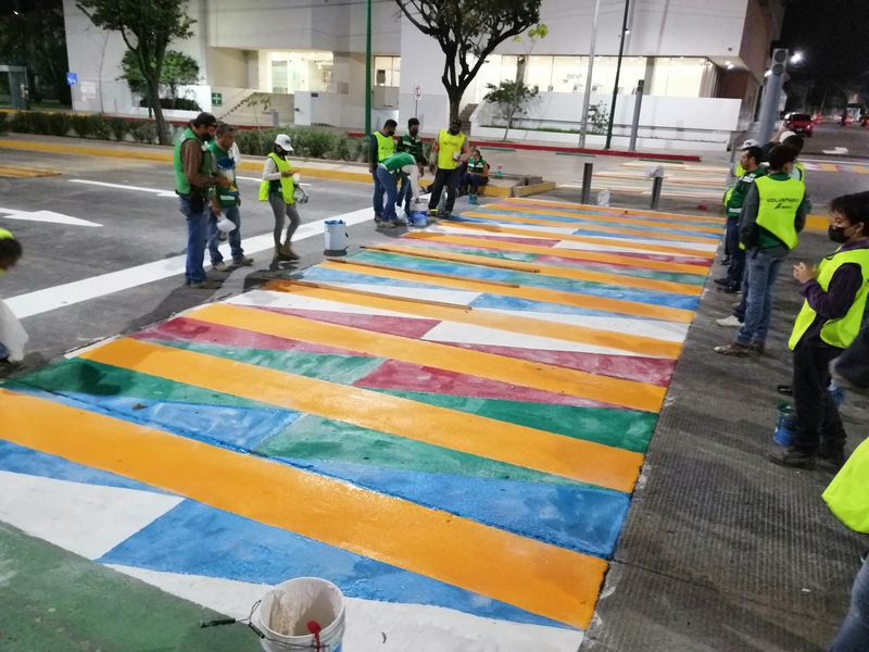 En el marco del Día Mundial del Peatón, Estrategia Misión Cero, en coordinación con el Ayuntamiento de Tuxtla Gutiérrez, CEMEX y la Cámara Mexicana de la Industria de la Construcción (CEMIC), llevaron a cabo una intervención urbana con pintura lúdica de cruce peatonal en el crucero de Blvd. Belisario Domínguez y 15a Poniente.
